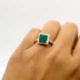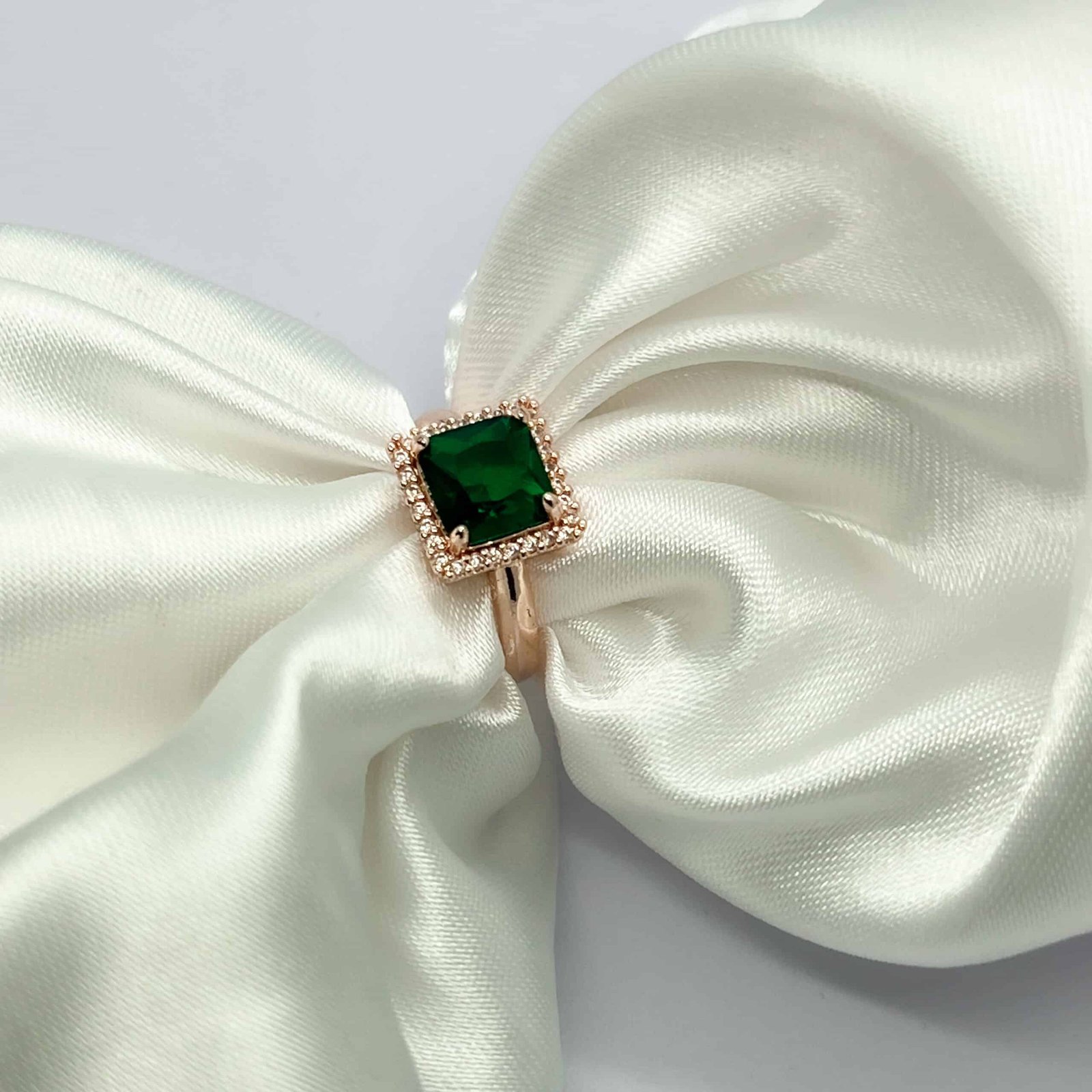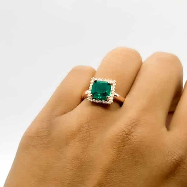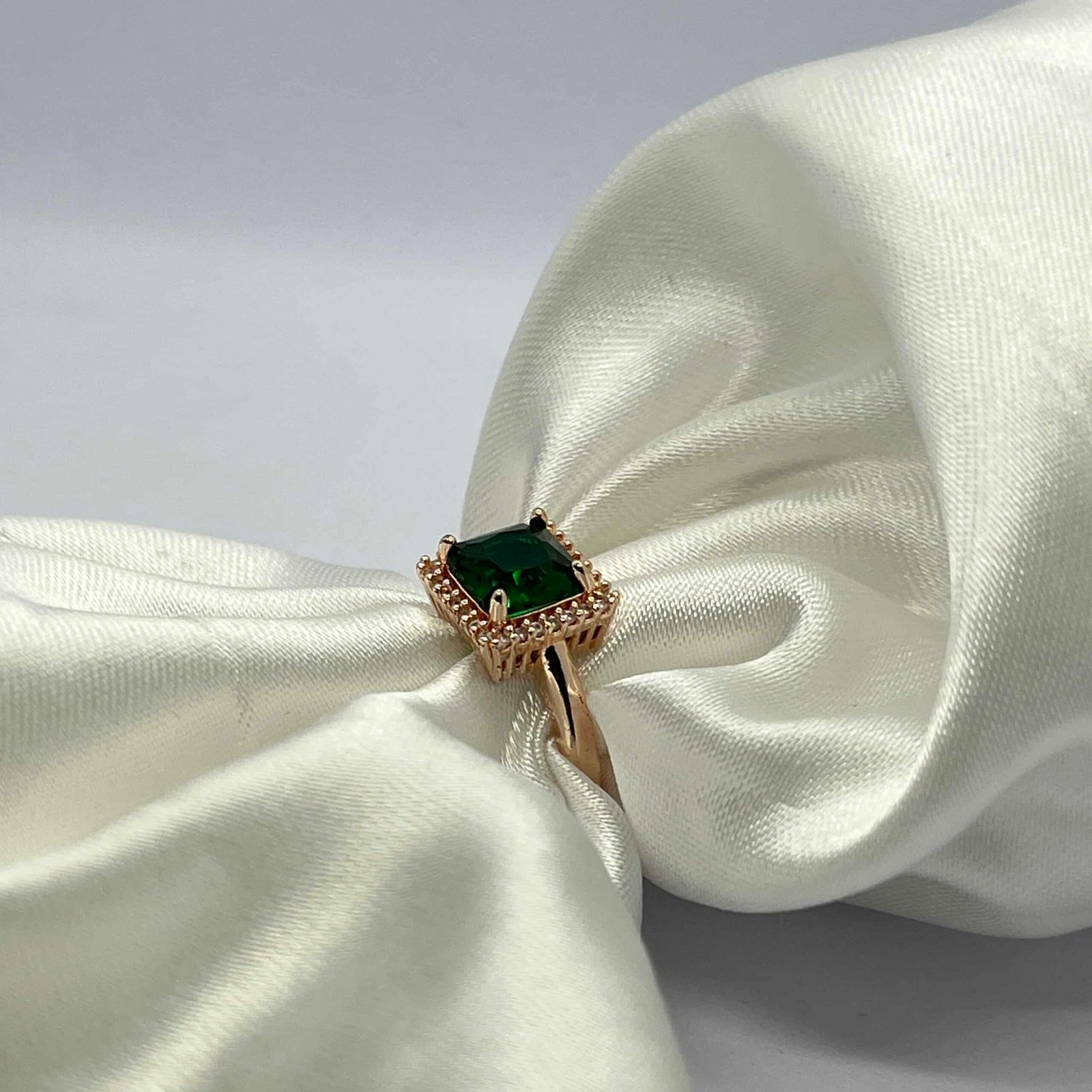 A ring that speaks of elegance and timeless beauty. This Emerald Green Square Cut Ring features a stunning deep-green gemstone set in a delicate gold-plated band. Surrounded by a halo of fine crystals, the emerald stone shines with a rich, luxurious glow that instantly elevates any look.