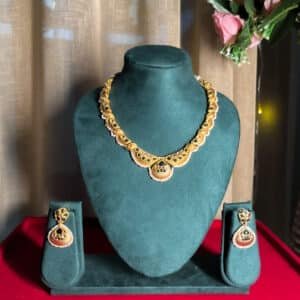 Choose this necklace set and let its dazzling design and refined beauty speak volumes about your exquisite taste. With its timeless appeal and high-quality craftsmanship, this Designer Filigree Gold Necklace Set with Earrings is more than just jewelry—it’s a reflection of your sophisticated style.