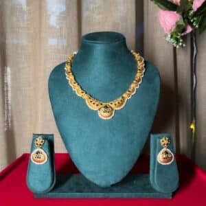 Whether you’re attending a grand celebration, a wedding, or simply want to make an impression at a formal event, this Designer Filigree Gold Necklace Set with Earrings is the ideal accessory. Its uniqueness lies in its ability to enhance any attire, ensuring you look absolutely radiant. Furthermore, it makes a meaningful and unforgettable gift for your loved ones, celebrating important milestones with grace and elegance.