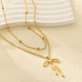Add a touch of effortless elegance to your jewelry collection with this Luxury Gold Bow Pendant Necklace.Its sleek gold-tone finish reflects light beautifully, creating a refined look that enhances any outfit.