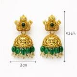 Rooted in classic Indian jewellery heritage, these gold jhumka earrings with green beads for women are a tribute to traditional elegance and fine craftsmanship. The beautifully carved gold-tone dome is adorned with deep green bead detailing that adds richness and character to the design.