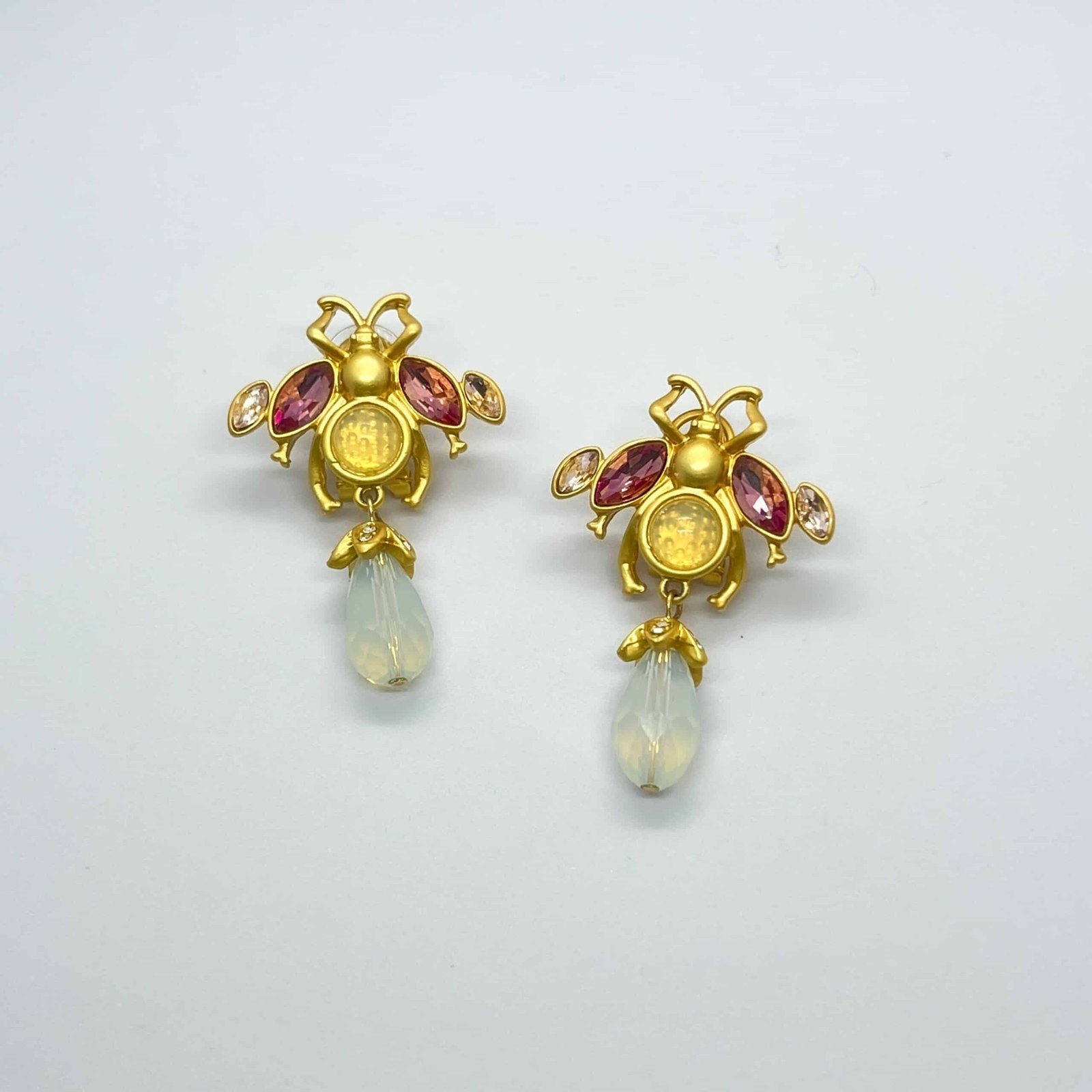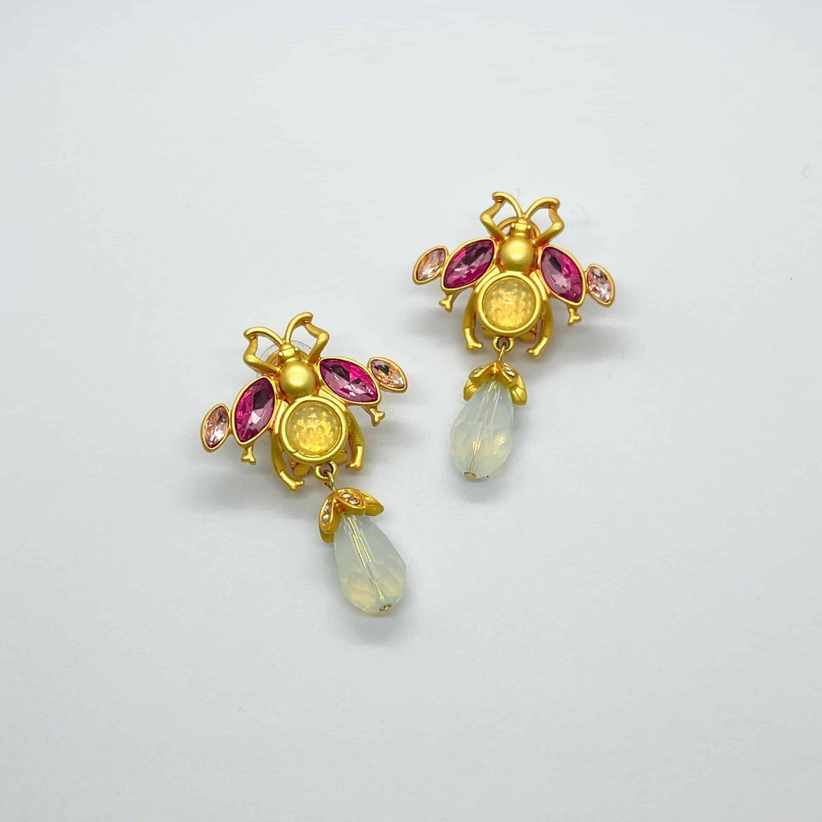 Add a touch of playful elegance with these Gold Plated Bee Earrings for Women, designed with stunning multicolor crystals and a delicate drop-shaped bead. Perfect for those who love unique, eye-catching accessories, these earrings combine luxury and creativity effortlessly.