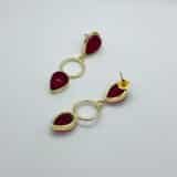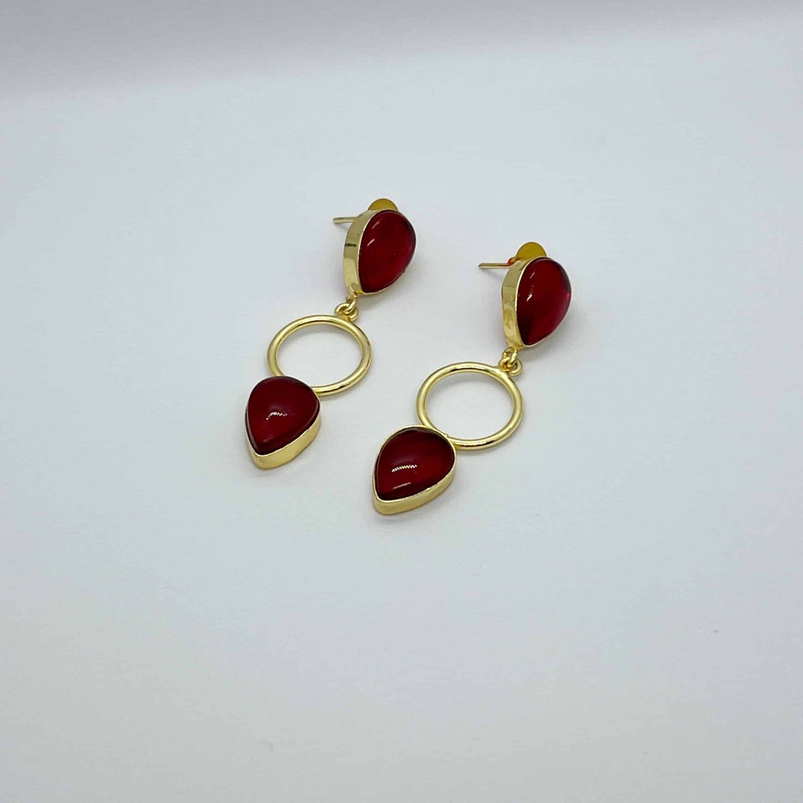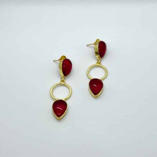 gold plated red stone drop earrings for women | elegant party wear earrings | minimalist earrings for girls | red stone earrings | modern gold earrings | lightweight drop earrings | stylish earrings for party | trendy gold earrings | women’s fashion jewellery | daily wear earrings