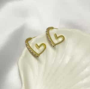 Pair these gold heart earrings with casual outfits or dress them up with evening wear. Their versatile sparkle ensures they stand out with any ensemble. Mix and match with necklaces or bangles for a complete look.