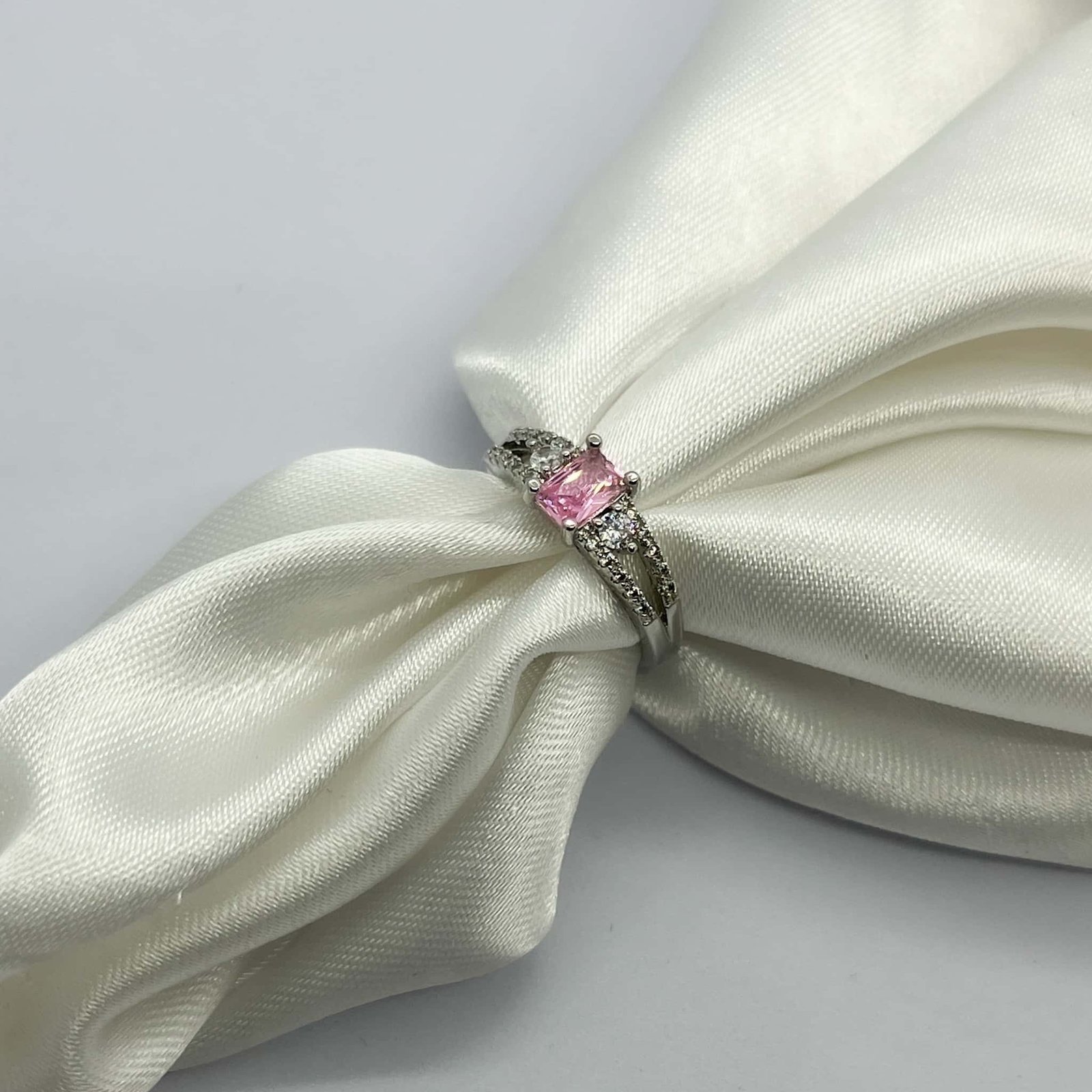 - Pink Stone Silver AD Ring – Elegant Diamond Design