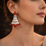 The lightweight yet luxurious design makes them perfect for weddings, receptions, and festive parties. Red & White AD Chandelier EarringsCrafted with premium quality alloy and rose-gold plating, these earrings combine timeless beauty with modern elegance — a must-have addition to your jewelry box.