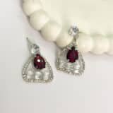 Type: Drop Earrings Base Material: Alloy Plating: Silver Plated Stone Type: Red & White CZ Crystal Color: Ruby Red Dimensions: 4 cm (L) × 2.5 cm (W) Occasion: Party, Festive, Casual