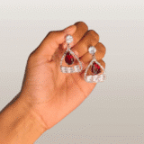 Made with high-quality Austrian diamonds (AD) and durable metal, these earrings promise long-lasting brilliance. The vibrant red crystals are set securely in a sophisticated design that complements any outfit. The attention to detail in the intricate craftsmanship results in an accessory that’s both timeless and modern—a fusion of classic charm and contemporary aesthetics.